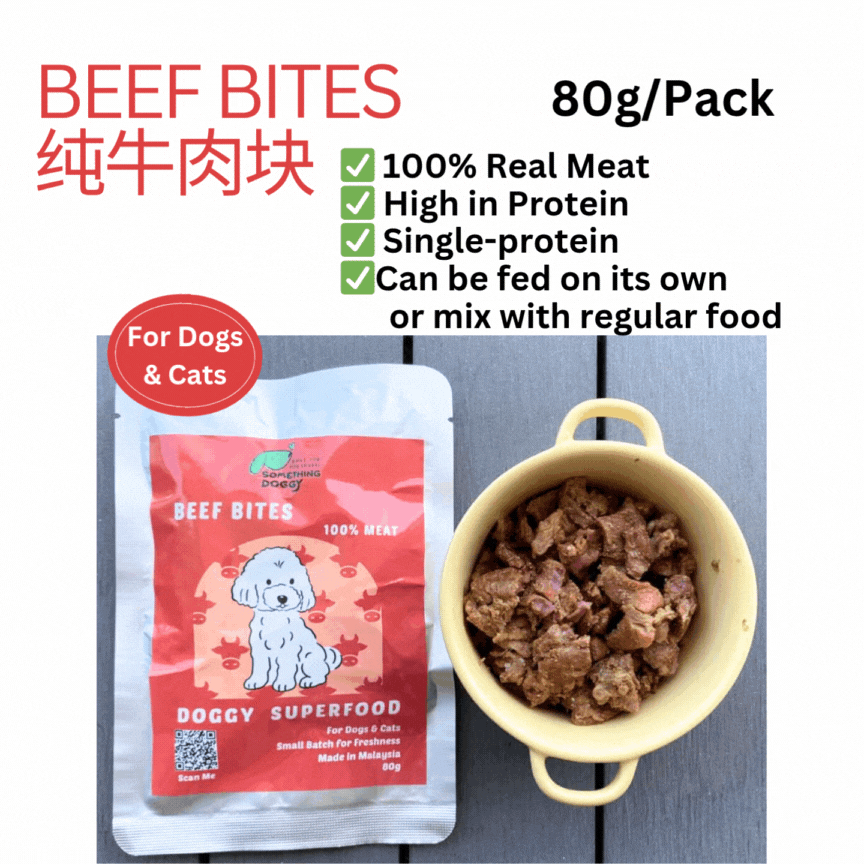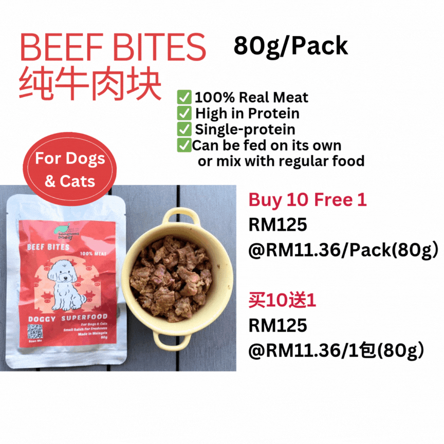 我们推出 Beef Bites 牛肉小颗粒,不仅是为了让毛孩爸妈在忙碌时能方便快速喂食,